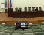 Localul e dotat cu mobilă corespunzătoare, echipament audio, video şi de translare sincronă.